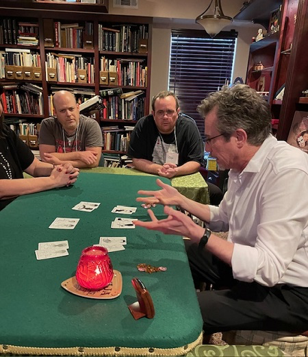 Those fortunate enough to have attended a Mystery School event are already familiar with the Library as a performance and lecture space. It is the heart of the school, where skilled magi teach and perform in a sumptuous parlor of mystery. In one class, I watched – awestruck – as Dean Larry Hass taught his version of a routine that I developed, an experience that will be hard to equal.